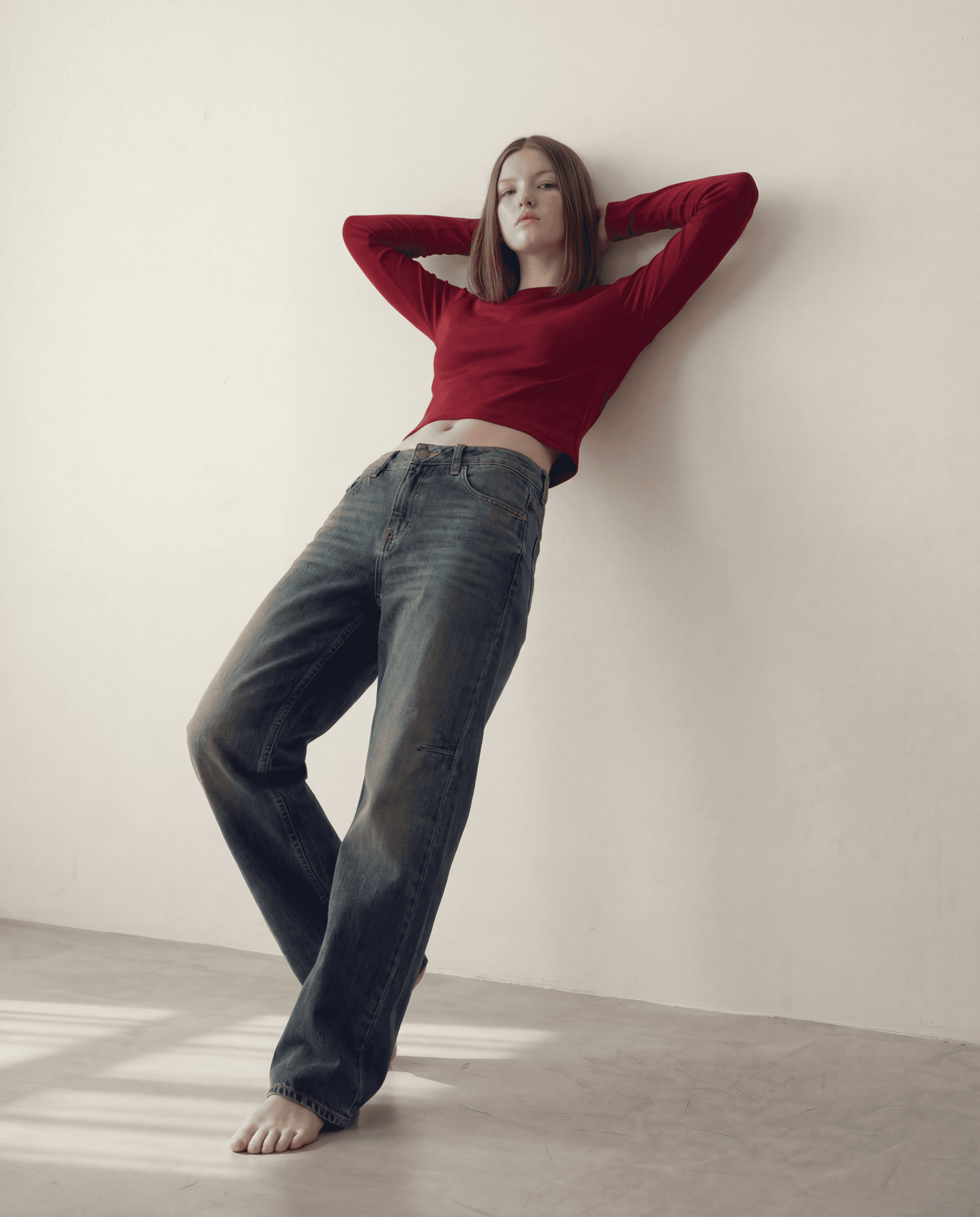 A full editorial campaign built around denim texture, featuring hyper-realistic model imagery styled and art directed entirely through AI.